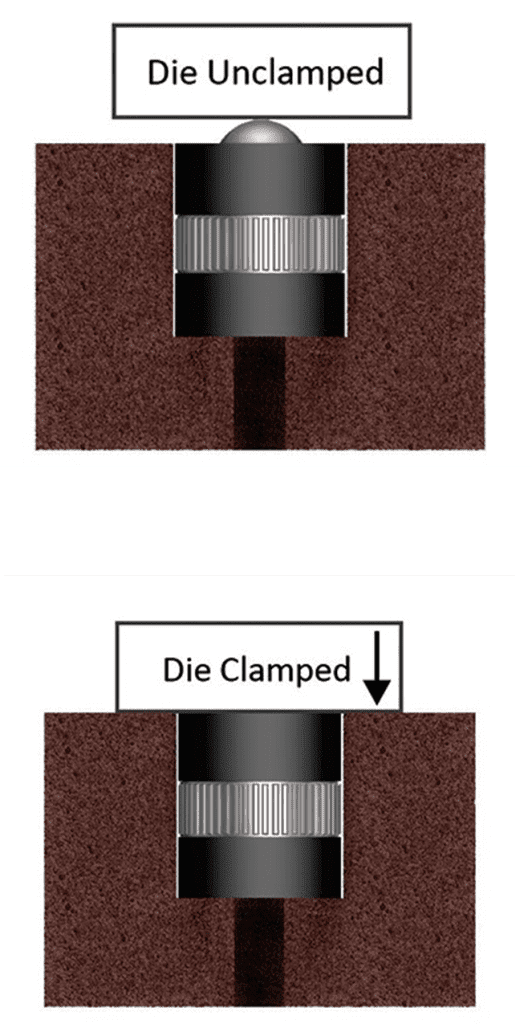 The Die Lifters enable easy multi-directional movement for quick and accurate positioning of tools. Then as the new tool is clamped down, it pushes the load ball into the unit body to hold the tool in place.
